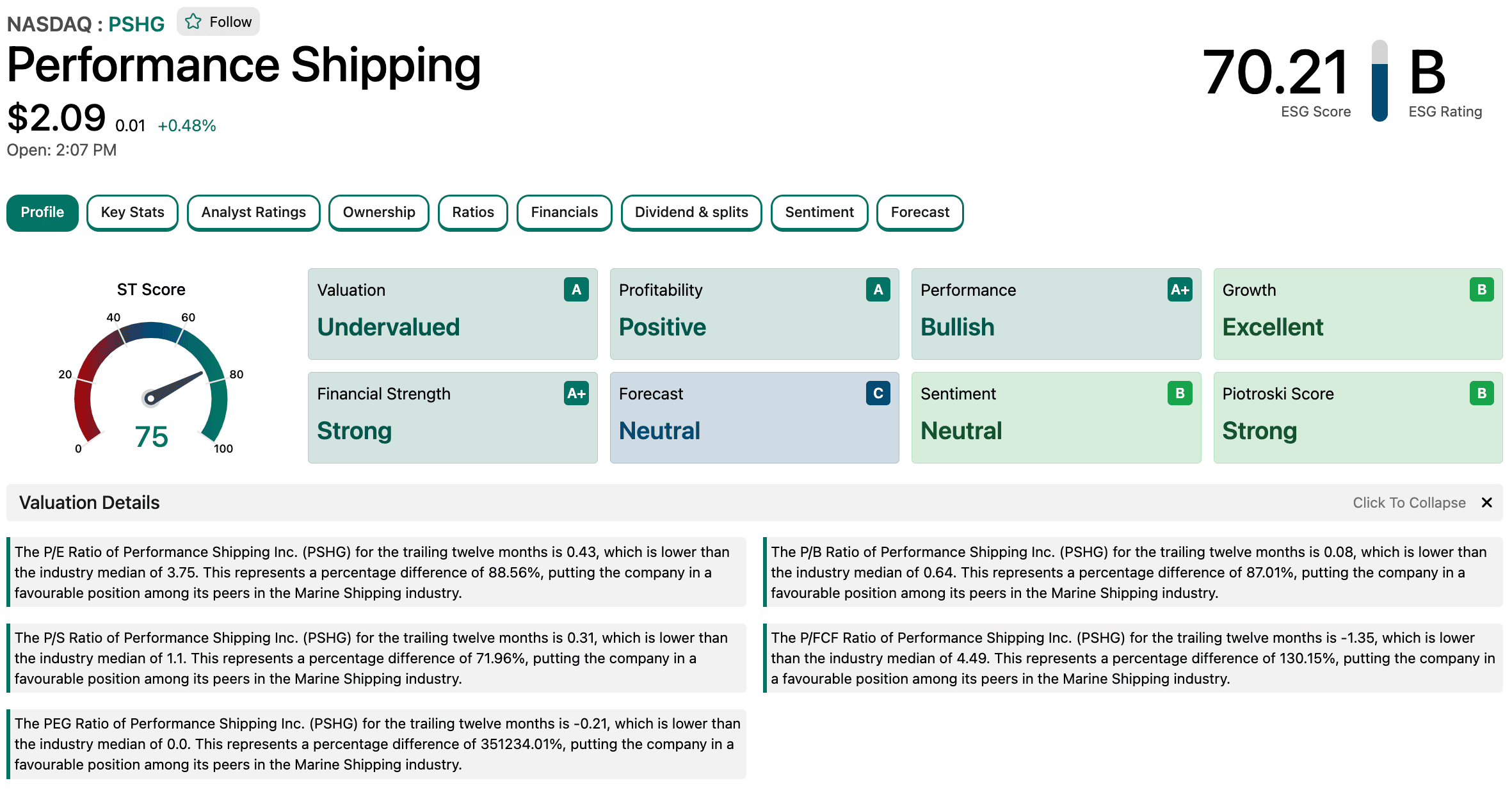 Performance Shipping is currently highly profitable, having been so for several years, with an impressive trailing 12-month Price-to-Earnings (P/E) ratio of just 1.3—significantly lower than the industry average.